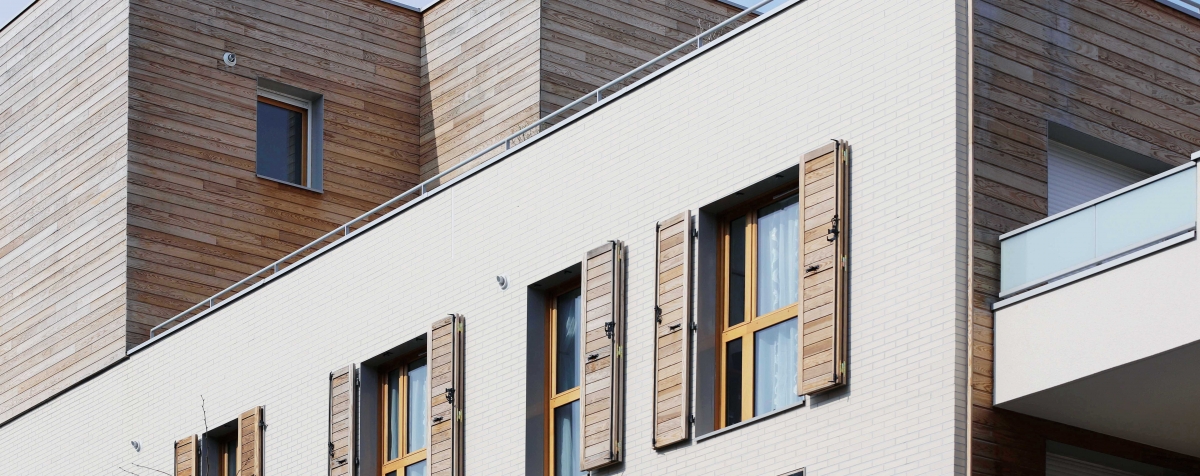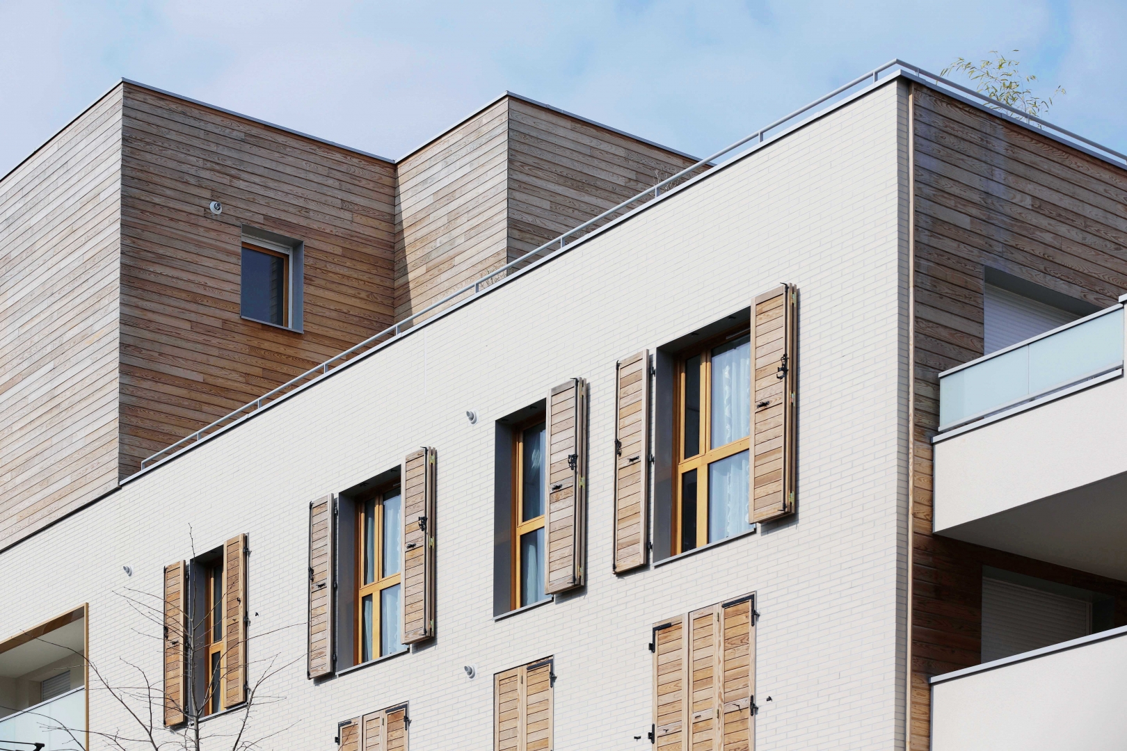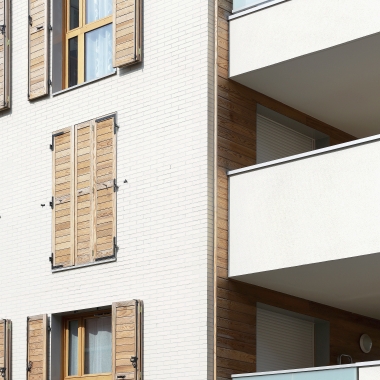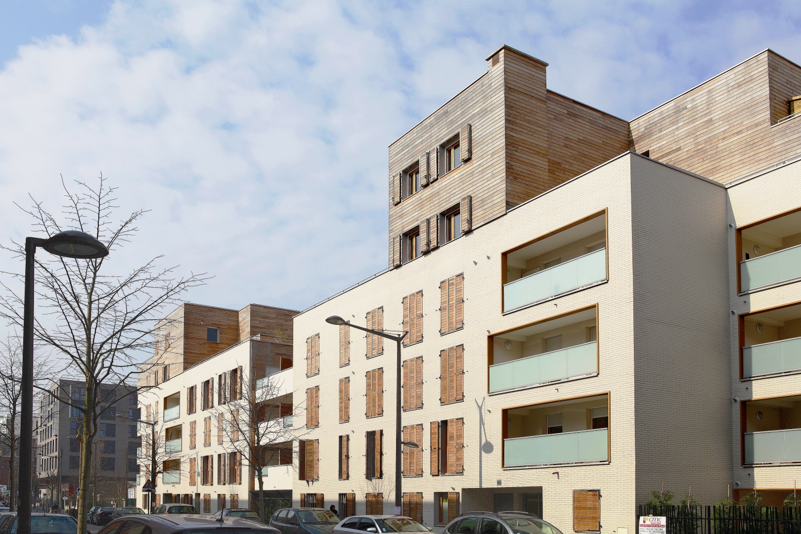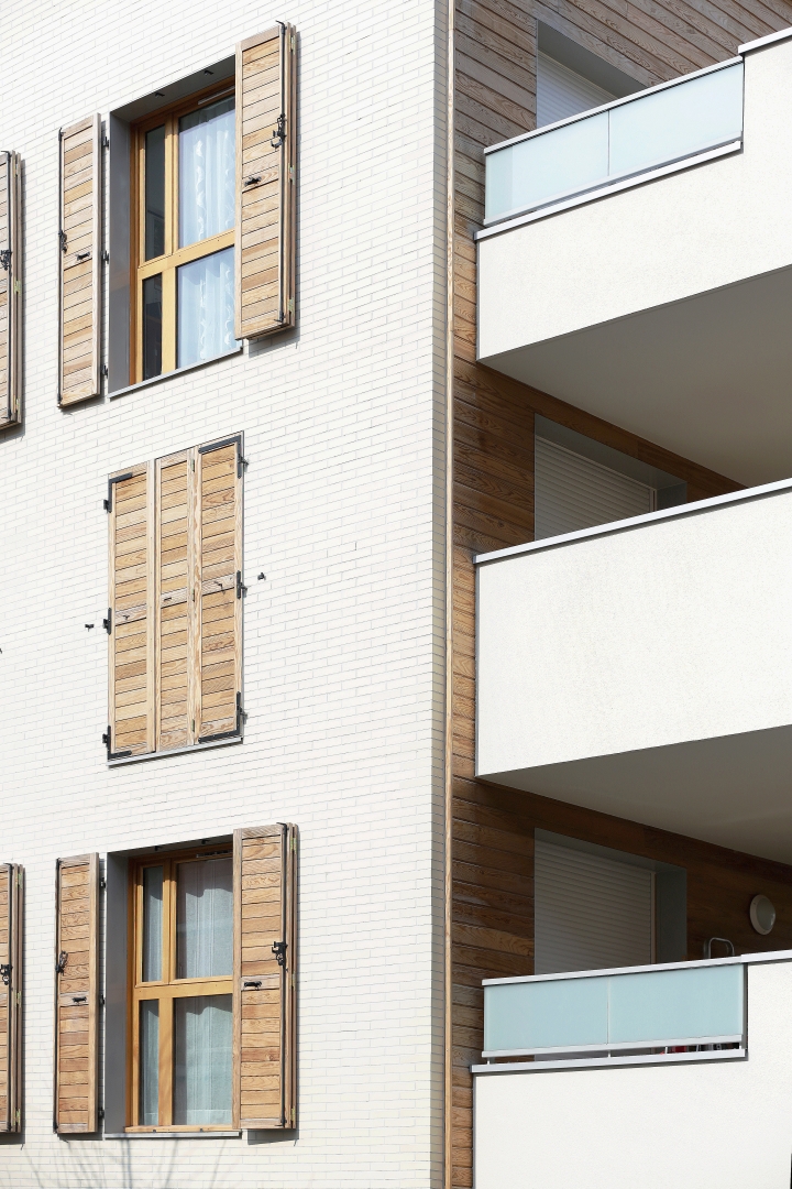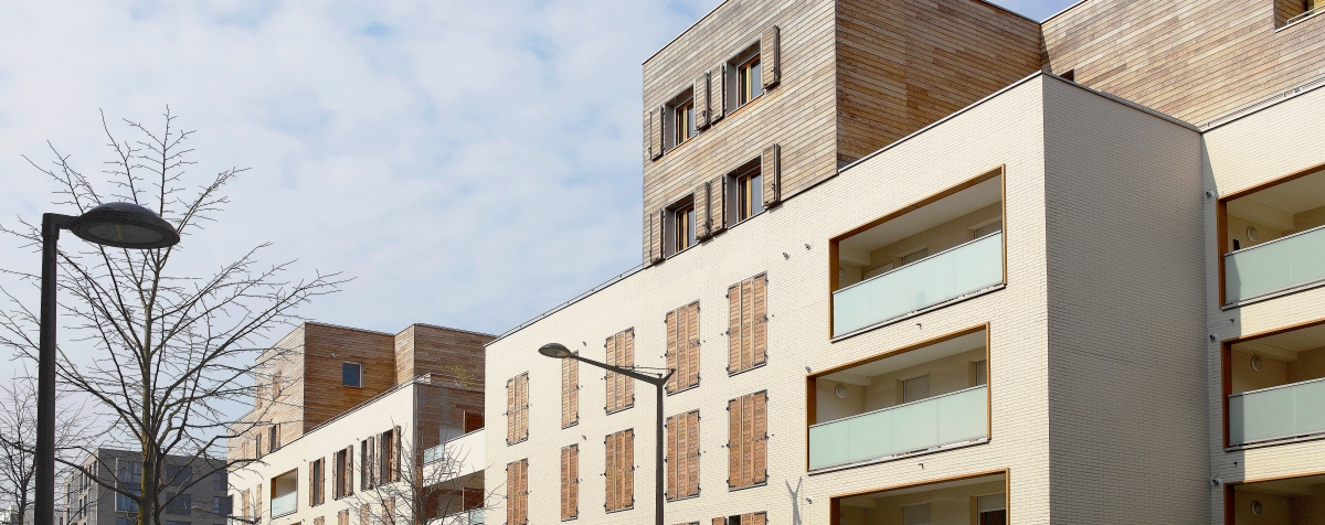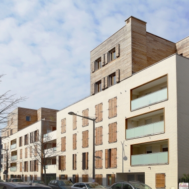 La brique de parement ou des vêtures adaptées aux techniques d'isolation par l'extérieur (si besoin est) caractérisent toutes les constructions. Le bois souligne le traitement des volumes supérieurs constituant un couronnement ainsi que les menuiseries et les éléments de protection solaire (volets…).