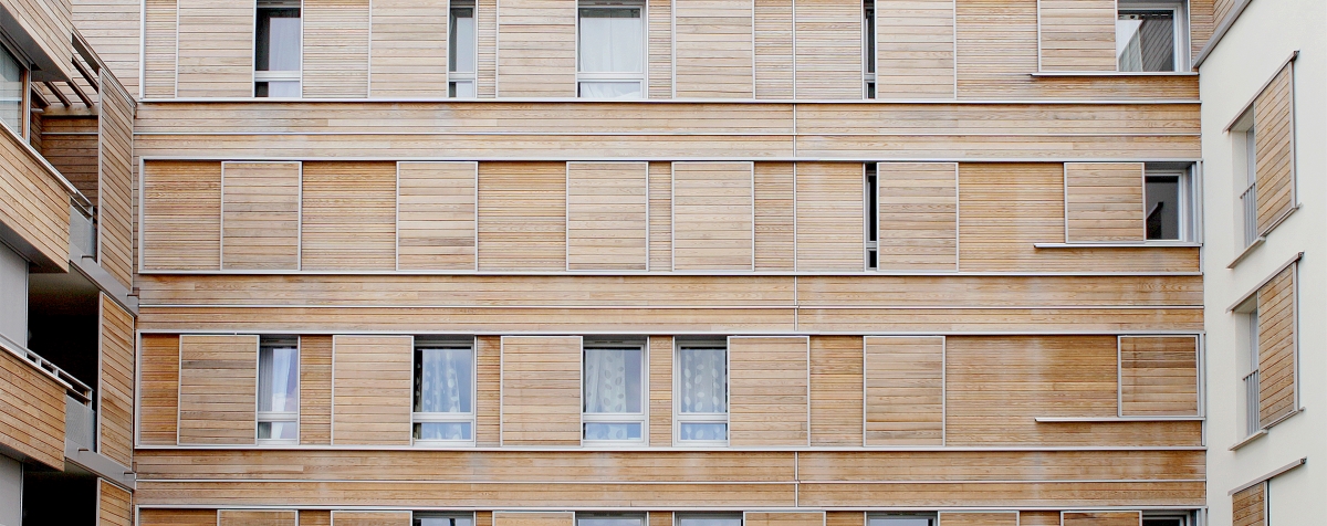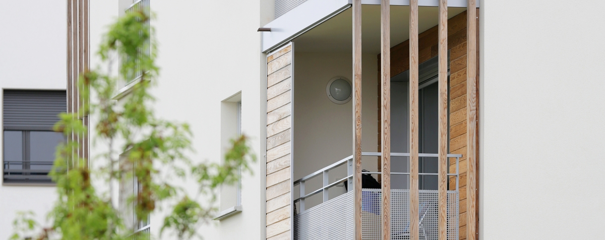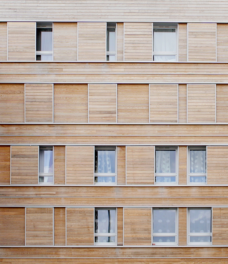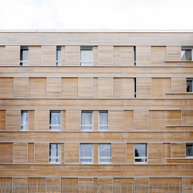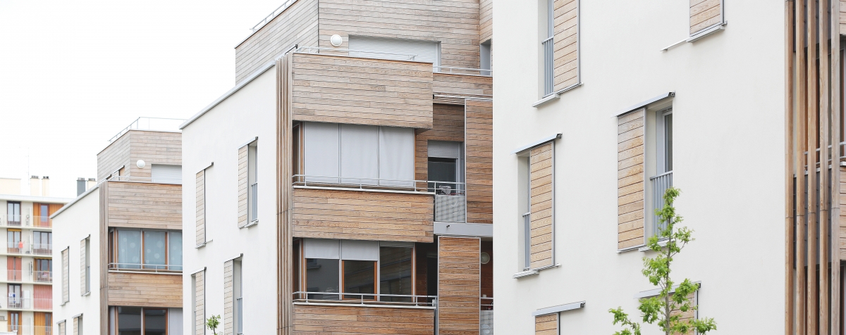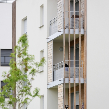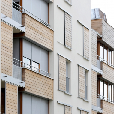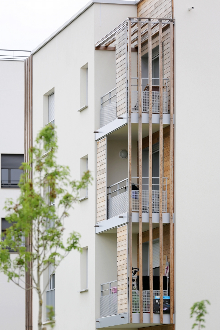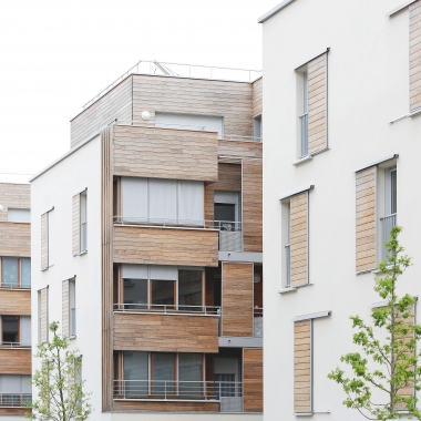 Le système constructif « bois » est la mise au point d’un complexe de vêtures et de panneaux isolants qui forme une enveloppe indépendante de la structure, imperméable à l’air et énergétiquement protectrice et étanche à la circulation de l’air. La ventilation est assurée mécaniquement et naturellement par la pluri-orientation des logements. Des occultations par stores en toile sont disposés sur les larges baies vitrées exposées au sud-ouest, afin d’optimiser les performances de confort d’été.