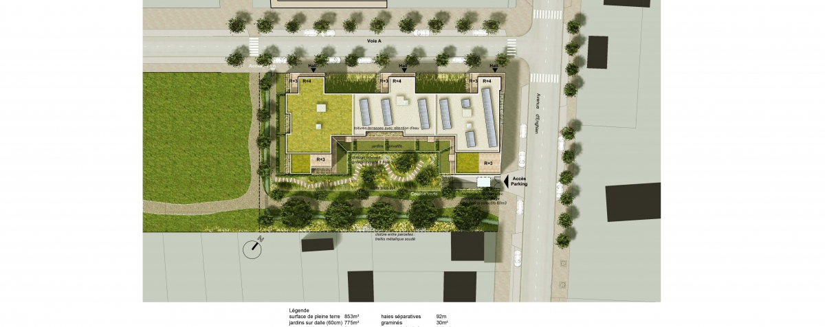 Les logements ont au moins deux orientations. Ils sont accessibles aux handicapés dans le respect des normes en vigueur depuis le 1er janvier 2010. Chaque logement dispose d’un espace extérieur : loggias, balcons, terrasses, en prolongement du séjour, ou d’un jardin privatif. Les terrasses de l’immeuble non occupées par des équipements techniques sont végétalisées.